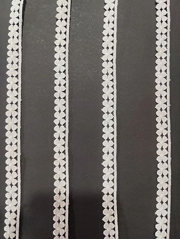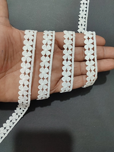 This elegant white crochet lace trim features a continuous mini floral pattern that adds a subtle yet graceful touch to any fabric. Designed with fine detailing and a slim profile, the lace is lightweight, soft, and easy to work with. Its minimal floral design makes it perfect for refined embellishments without overpowering the overall look. Ideal for apparel, lingerie, kidswear, and decorative accents, this lace offers a neat and polished finish.